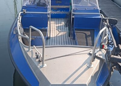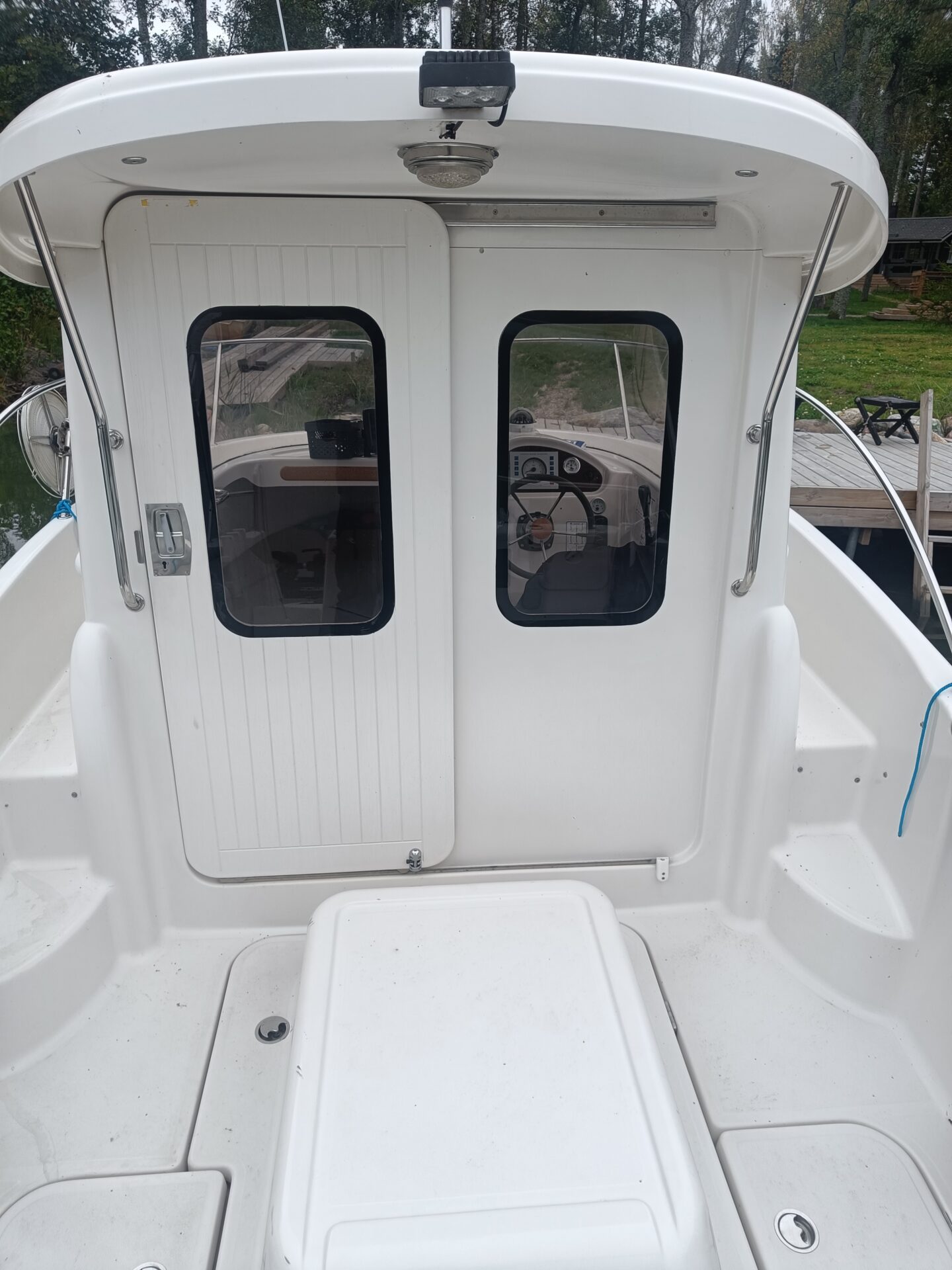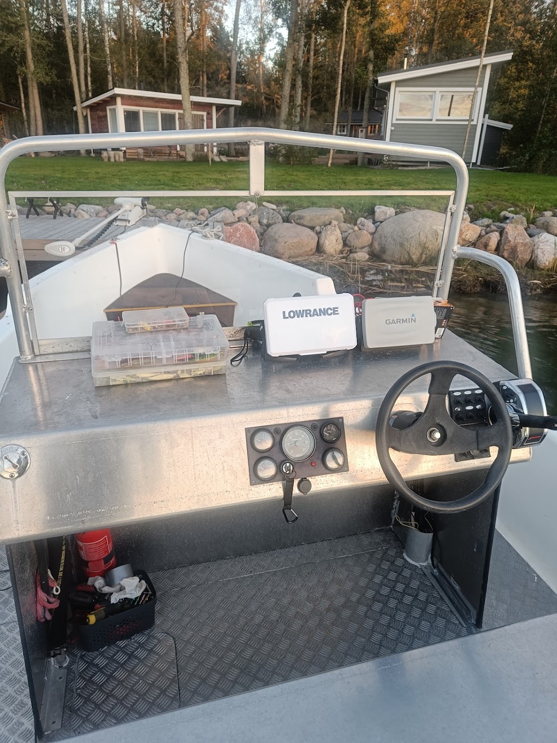 Varusteluun kuuluvat taivasankkuri, uimataso, Lowrancen kaikuplotteri sekä vapatelineet, jotka tekevät veneestä toimivan niin kalaretkille kuin saaristoseikkailuihin. Pienen syväyksen ja tukevien keulatikkaiden ansiosta veneellä on helppo rantautua lähes mihin tahansa.