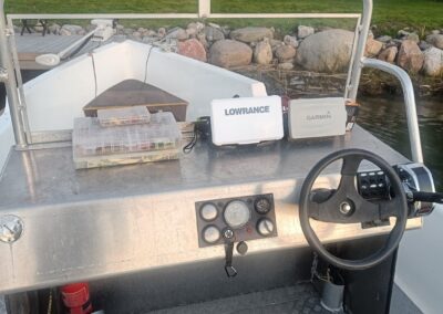 Tilaa on mukavasti neljälle kalastajalle tai kuudelle retkeilijälle, ja mukaan mahtuu runsaasti varusteita myös pidemmille saariretkille. Kalastusta ja navigointia helpottavat Lowrancen kaikuplotteri ja GPS sekä keulamoottori, jotka tekevät liikkumisesta ja kalastamisesta vaivatonta.